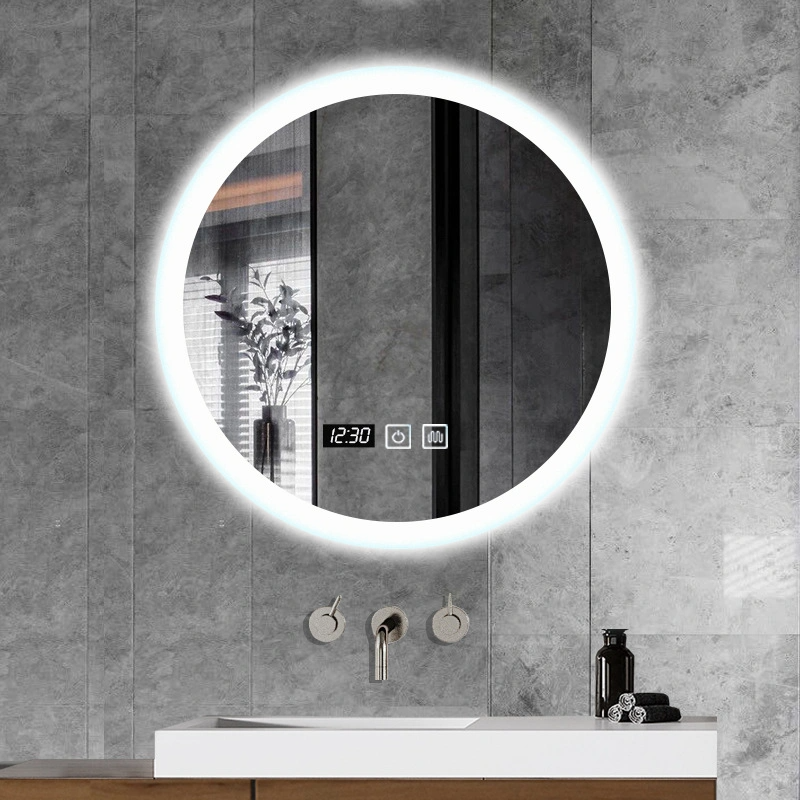 Acasă / Produs / Oglinda pentru baie / Oglindă de baie rotundă cu iluminare din spate, fără rame, pentru casă modernă Oglindă decorativă pentru baie pentru baie