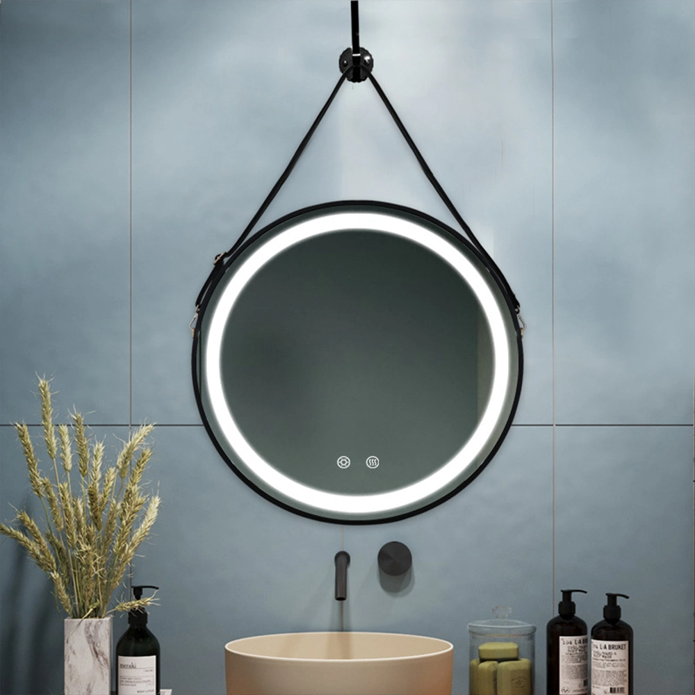 Acasă / Produs / Oglinda pentru baie / Oglindă de perete rotundă din PU cu curea din piele