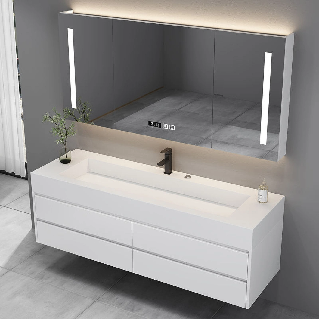 Acasă / Produs / Dulap cu oglinzi / Mobilier de baie din lemn masiv alb de vânzare cu ridicata în stil american, dulap de baie cu oglindă