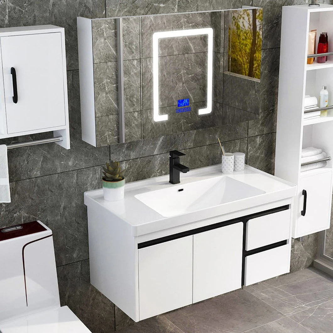 Dulap cu oglindă alb european, modern, mobilier de toaletă, dulap de baie cu chiuvetă din ceramică