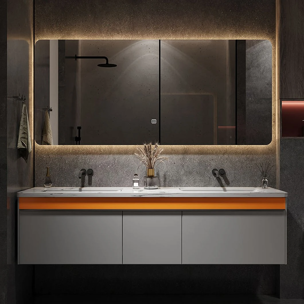 Acasă / Produs / Dulap cu oglinzi / Designer OEM, personalizat, ardezie, gri de lux, chiuvetă de mână, dulap din lemn masiv, combinație de dulapuri de baie